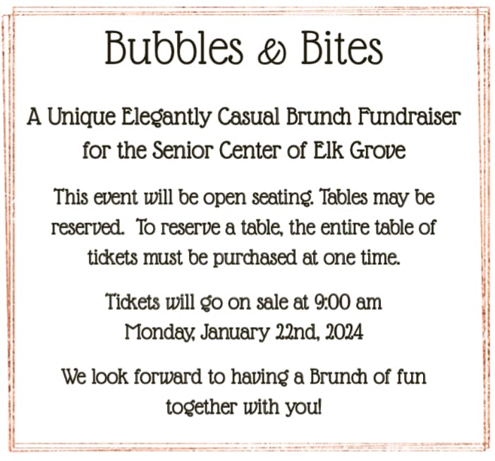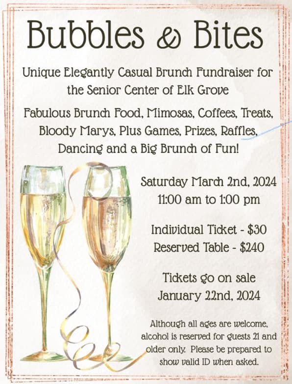 Join us at the Senior Center of Elk Grove’s Brunch. The Elk Grove Lions Club will be preparing the pancake breakfast for this event.